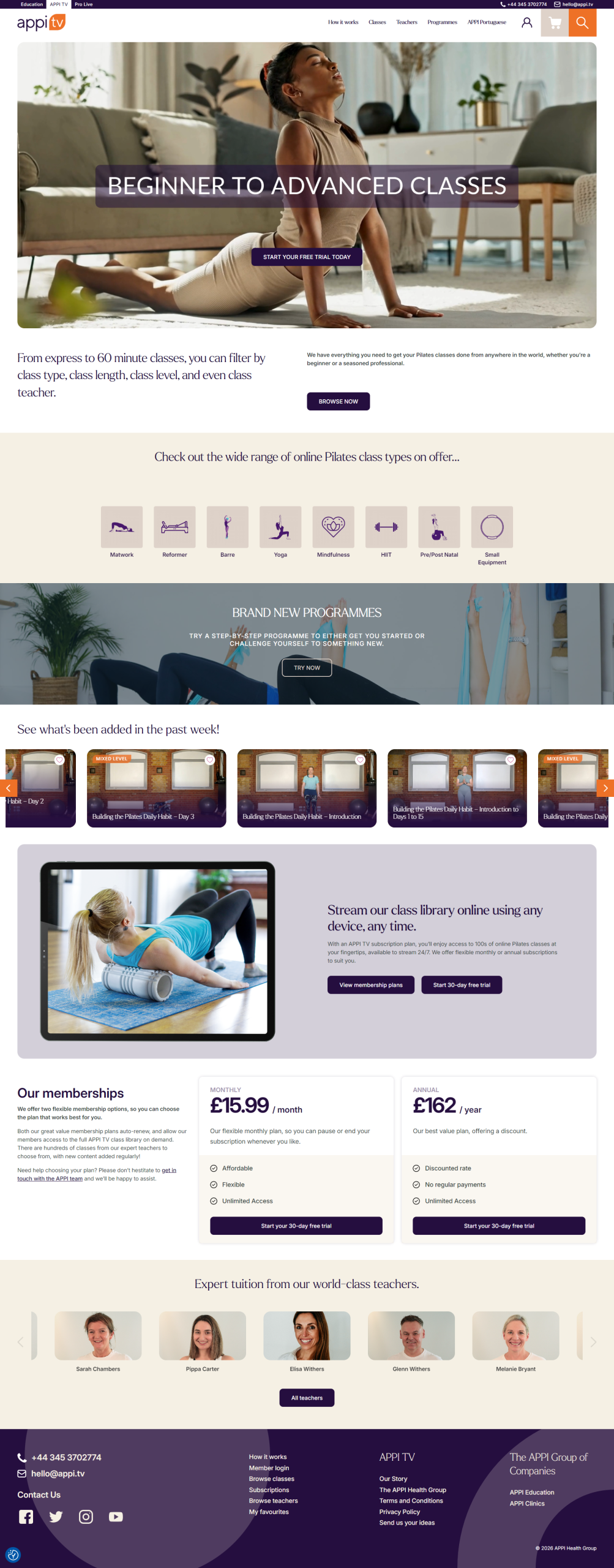 The APPI Health Group are world leaders in Pilates teacher training, and have been operating for 20 years, with over 70,000 global students across 30 countries worldwide. As well as operating a broad range of digital platforms, they also run a popular annual Pilates conference.